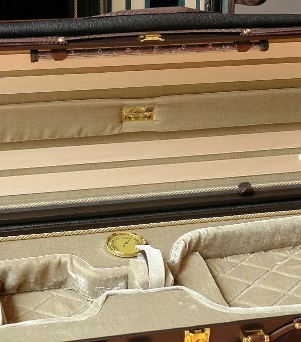 Unlike industrially-made cases, you can have your Musafia Cremona Italy case specially-built to your exact needs and requirements, enhancing instrument safety and long-term enjoyment of your Musafia with built-in options and original Musafia accessories. While most options must be requested when placing a custom order, accessories and some selected options may be subsequently retrofitted to an existing Musafia case.